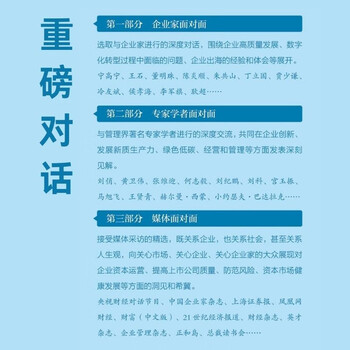 第二部分是作者与管理界一些著名的专家学者进行的深度交流,他们共同在企业创新、发展新质生产力、绿色低碳、经营和管理等诸多方面发表了深刻的见解,具有很强的理论性和指导性。