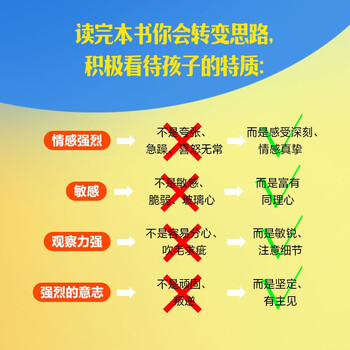 •每5个孩子中,就有1个高敏感孩子。近年来,大众对高敏感孩子的关注度不断升高。本书作为这方面的代表作,在荷兰本土再版14次,内容一直保持优化和更新,为我们带来欧洲前沿的高敏感儿童养育指导。 •帮助家长轻松识别高敏感孩子的需求!孩子情感强烈,不是夸张、急躁,而是感受深刻、真挚;孩子敏感,不是玻璃心,而是富有同情心;孩子观察力强,不是容易分心,而是注意细节……本书帮助我们接受孩子本来的样子,用积极的眼光看待孩子的特质。 •从生理到心理,从日程安排到家庭价值观,手把手教会家长与高敏感孩子合作的方法!怎样减少不必要的刺激让养育行为具有可预测性(给孩子秩序感)、教孩子保持社交弹性(可以反悔、不必非黑即白)、关于传统奖惩的失效与正确地立规矩(高敏感儿童只会在内驱力的激励下才会行动起来)、如何处理高敏感儿童的负面情绪等等 •3大随看随用的实操模块,100+案例分享,60+可复制粘贴的养育、照顾、陪伴指导,养育内心富足、强大的高敏感小孩!