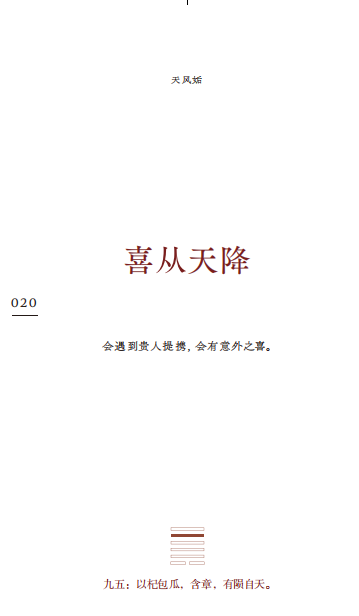 以全新方式激活古老《周易》,将六十四卦、三百八十四爻化为448则自成节奏的小篇章,每一页皆可作为回应当下心念的“答案”。