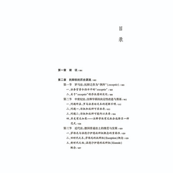 本书旨在阐述抗辩权的基础理论,分别探讨抗辩权的“历史源流”与“教义争论”。“历史源流”部分,旨在检视抗辩权如何从罗马法、中世纪法、近代法,发展成现代法上的面貌:抗辩权可溯源至罗马法上责令的exceptio(例外)机制,其被用以对抗诉权。此机制后被中世纪法上注释法学派结合亚里士多德哲学改造成“事实上抗辩”(exceptio facti)与“法律上抗辩”(exceptio iuris),二者即诉讼法上抗辩权(异议权,Einwendung)和实体法上抗辩权(Einrede)的雏形。在近代法上,抗辩权概念虽被部分德国学说拒斥,但在萨维尼(Savigny)的巨大影响力下,终被普通法继受。经温德沙伊德(Windscheid)改造后,抗辩权又从对抗诉权,变成对抗请求权。最终,在现代法上,抗辩权概念被德国民法典的法条直接采纳,从此其影响遍及各国包括我国民法学。