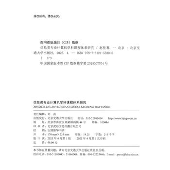 书中的研究以承德某高等院校信息类专业为案例,结合实际教学经验,提出了符合时代需求的课程体系改革方案,为高校计算机课程体系建设提供了有价值的参考。通过理论与实践相结合的方式,《信息类专业计算机学科课程体系研究》为培养具备国际竞争力的创新型人才提供了重要指导。
