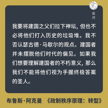 我要将建国之父们拉下神坛, 但也不必将他们打入历史的垃圾堆。我不否认瑟古德·马歇尔的观点。建国者并未摆脱他们时代的偏见。如果我们想要理解建国者的不朽意义, 那么我们不能将他们视为手握终极答案的圣人。