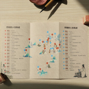 3.赠送苏轼与苏辙的人生轨迹图,生动展示文坛双子星的重要人生切面。