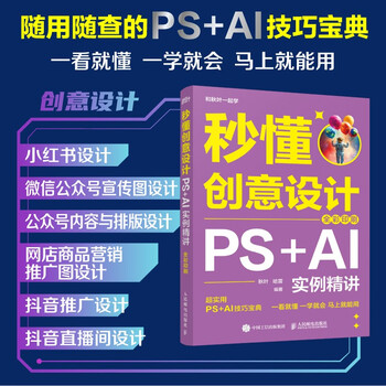 全书精心编排6个章节,内容涵盖小红书设计、微信公众号宣传图设计、微信公众号内容与排版设计、网店商品营销推广图设计、抖音推广设计和抖音直播间设计等方面。书中搜集并整理了生活与工作中常见宣传图的创意设计方法,每种技巧都配有清晰的使用场景说明、详细的图文操作说明及配套练习与动画演示,全面而直观地展现Photoshop的强大创意设计能力。