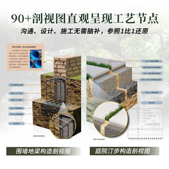 ★铺地工程、景观构筑物、水景营造、围墙做法,超多、超丰富的工艺细节